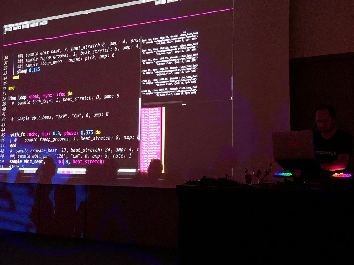 : Sam Aaron on stage at the