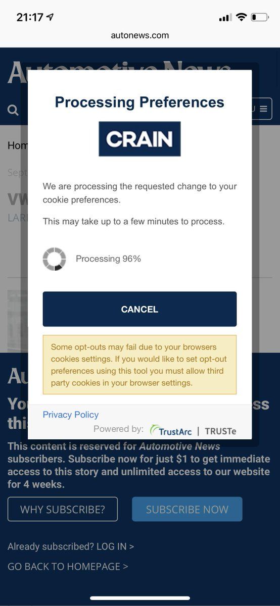 “We are processing the requested changes to your cookie preferences. This may take up to a few minutes to process.” I can’t even