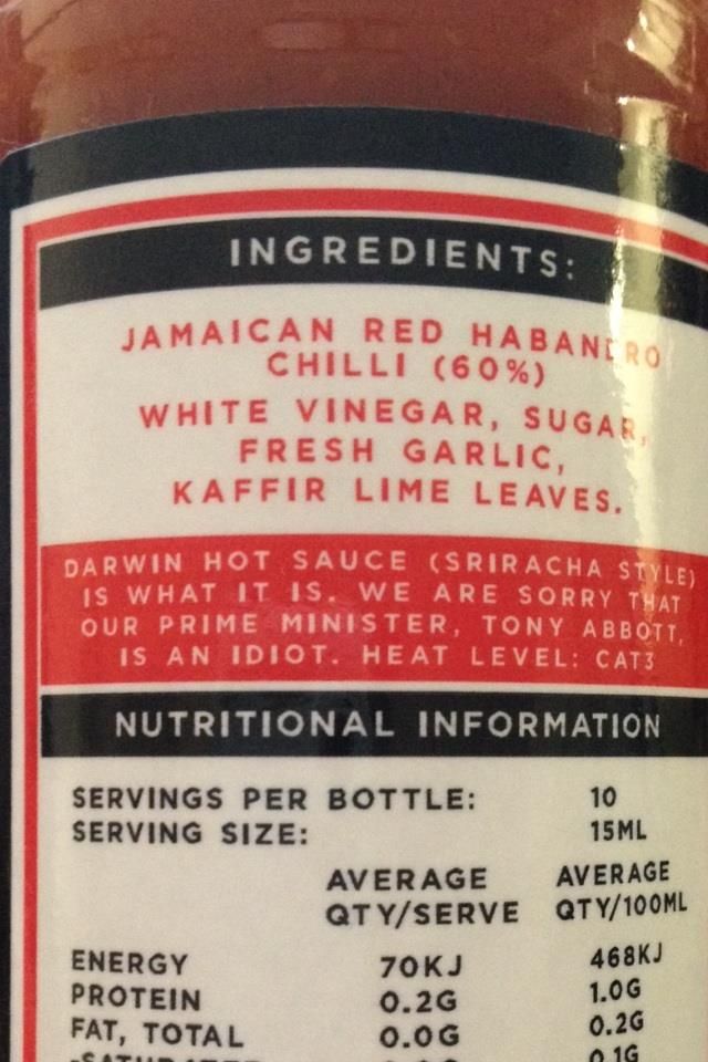 : DARWIN HOT SAUCE CREATORS APOLOGISE ON BOTTLE'S INGREDIENTS LABEL